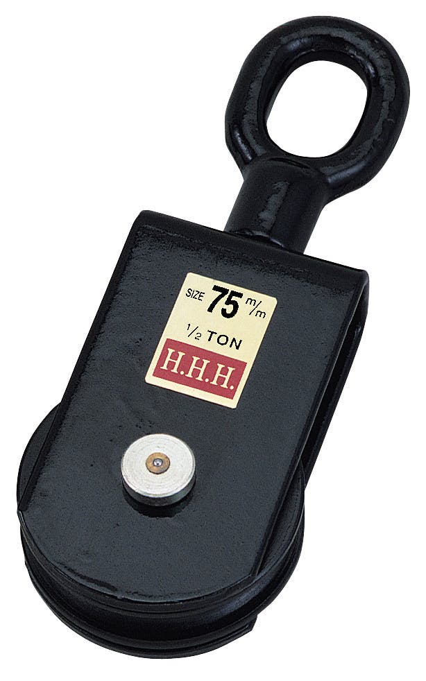 ●メーカー…スリーエッチ●型番…MB-75●サイズ(W×D×H)mm…75x46x196●重量(g)…1200●材質…鉄●使用荷重…0.5t●使用ロープ径…10mm●車径…75mm●全長…196mm