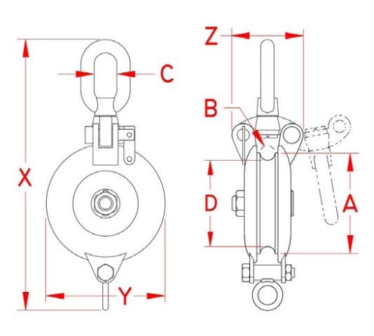 ●使用荷重…2267kg●使用ロープ径…~19mm●車径…158mm●全長…381mm●材質…ステンレス(SUS316)●重量…5.1kg●スイベル式(360°回転)●ベケット付●シーブにベアリング入りで、滑りが良くなっています●ロープ用