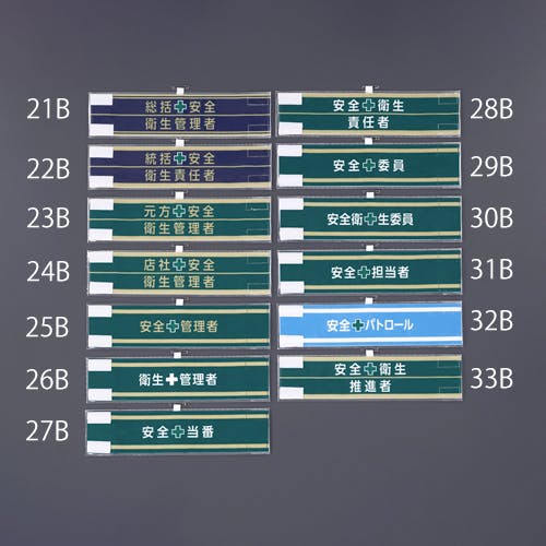 ●メーカー…ユニット(UNIT)●型番…365-55●サイズ(mm)…400×90●内容…衛生管理者●材質…フェルト●ビニールカバー、上部安全ピン、マジックテープ付●汚れを防止するビニールカバー付