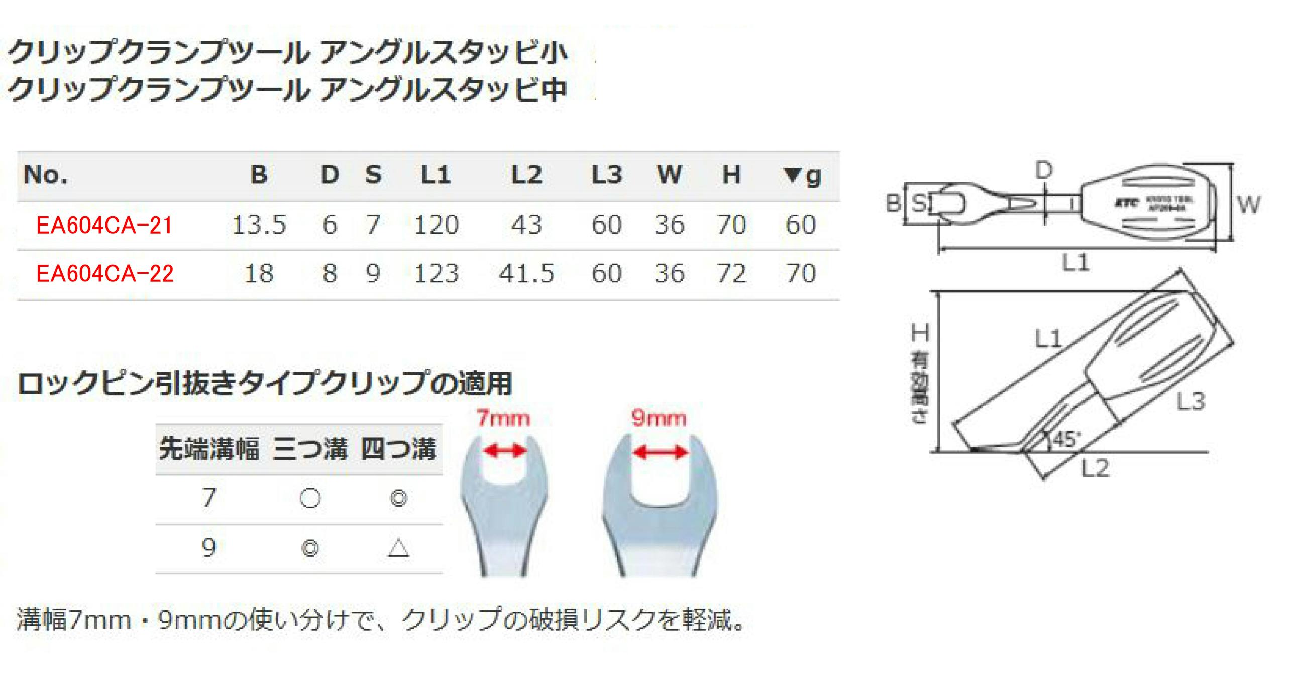 京都機械工具(KTC) クリップクランプツールスタッビ(アングル/小) 123mm/9mm EA604CA-22 4550061188903【別送品】