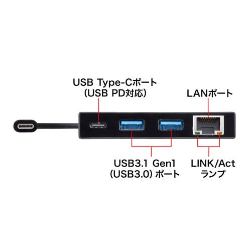 サンワサプライ USB3.0ハブ(Type-C) [2ポート+LAN+USB PD] EA764AD-62 4550061811320【別送品】
