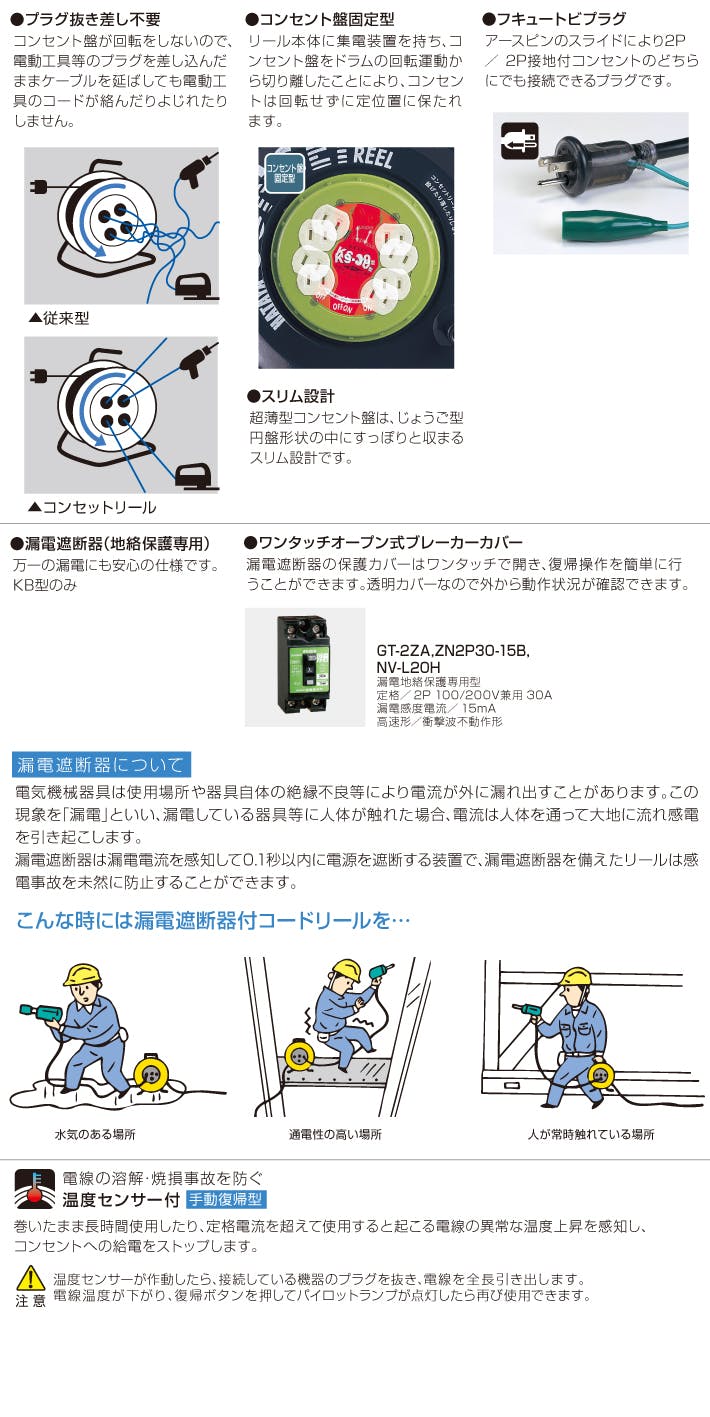 ハタヤリミテッド(HATAYA) コンセント固定リール(アース付) AC125V/15A/30m EA815FB-30 4518340741140【別送品】