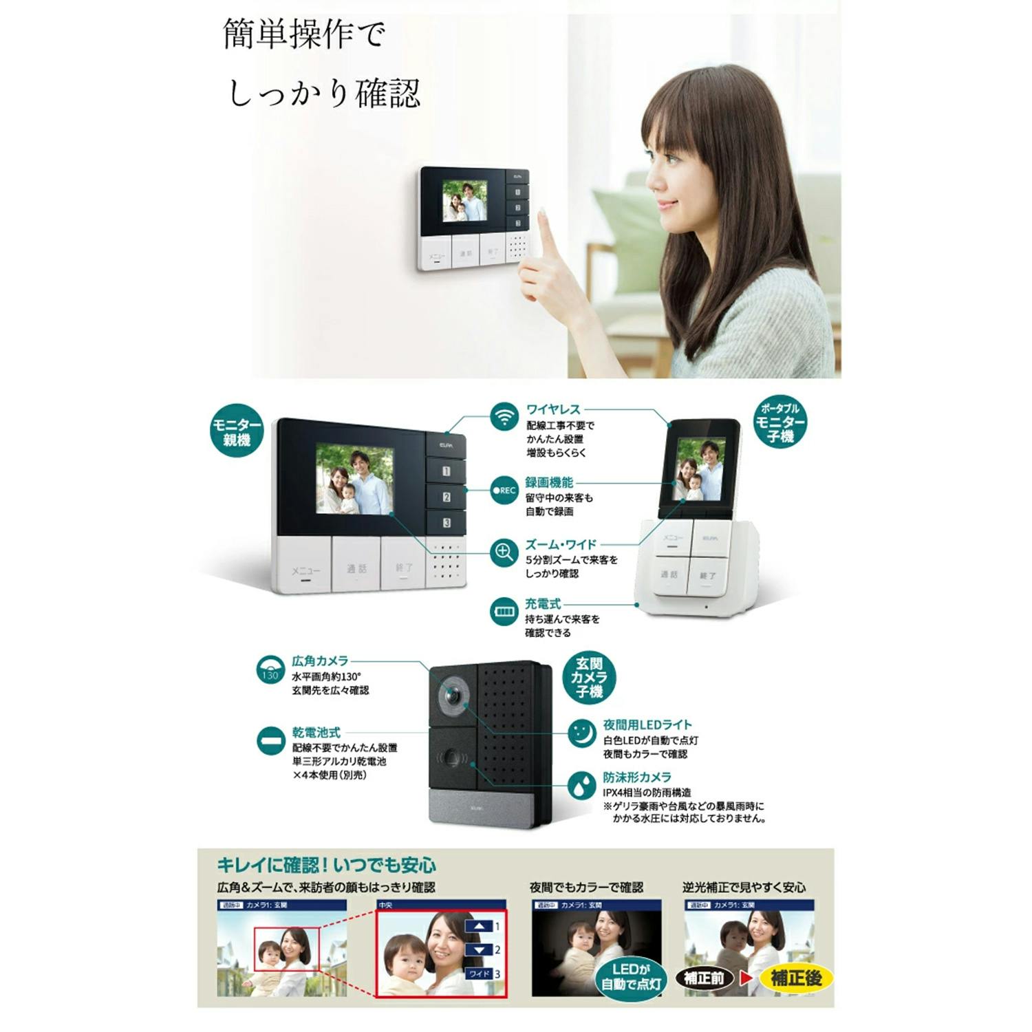 朝日電器(ELPA) ワイヤレステレビドアホン EA864BB-16A 4550061101049【別送品】