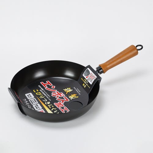 ●直径…260mm●深さ…60mm●全長…435mm●材質…本体:鉄(シリコーン樹脂塗装)柄:天然木●重量(g)…885●直火・IH対応●エンボス加工でこびりつきにくい●フチに向かって徐々に薄くするスピン加工で軽量化。