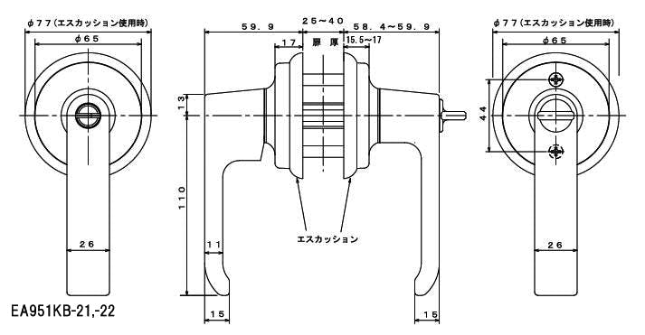 取替用レバーハンドル(2スピンドル型) 25-40mm EA951KB-22 4548745605198【別送品】