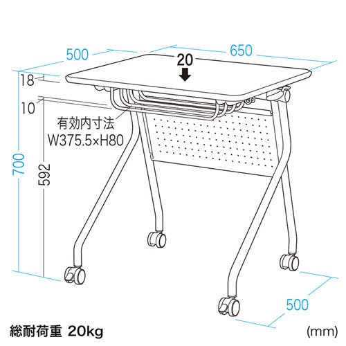サンワサプライ 折りたたみデスク 650x500x700mm EA954HC-280A 4550061270912【別送品】