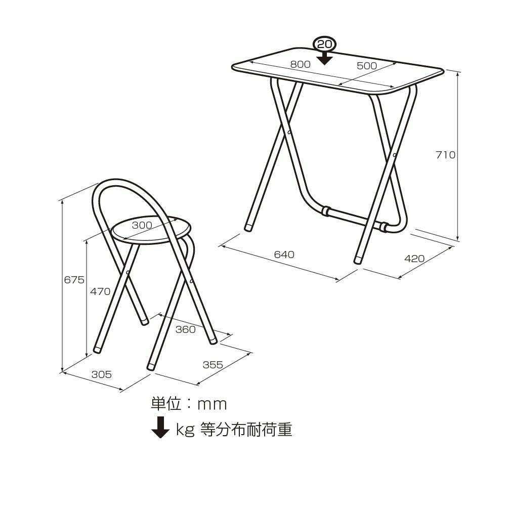ナカバヤシ デスク(折畳式/チェアー付) 800x500x710mm EA954HC-39 4550061033104【別送品】