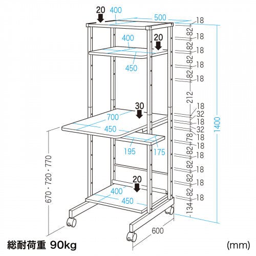 サンワサプライ パソコンデスク 500x700x1400mm EA954HC-411B 4550061932421【別送品】