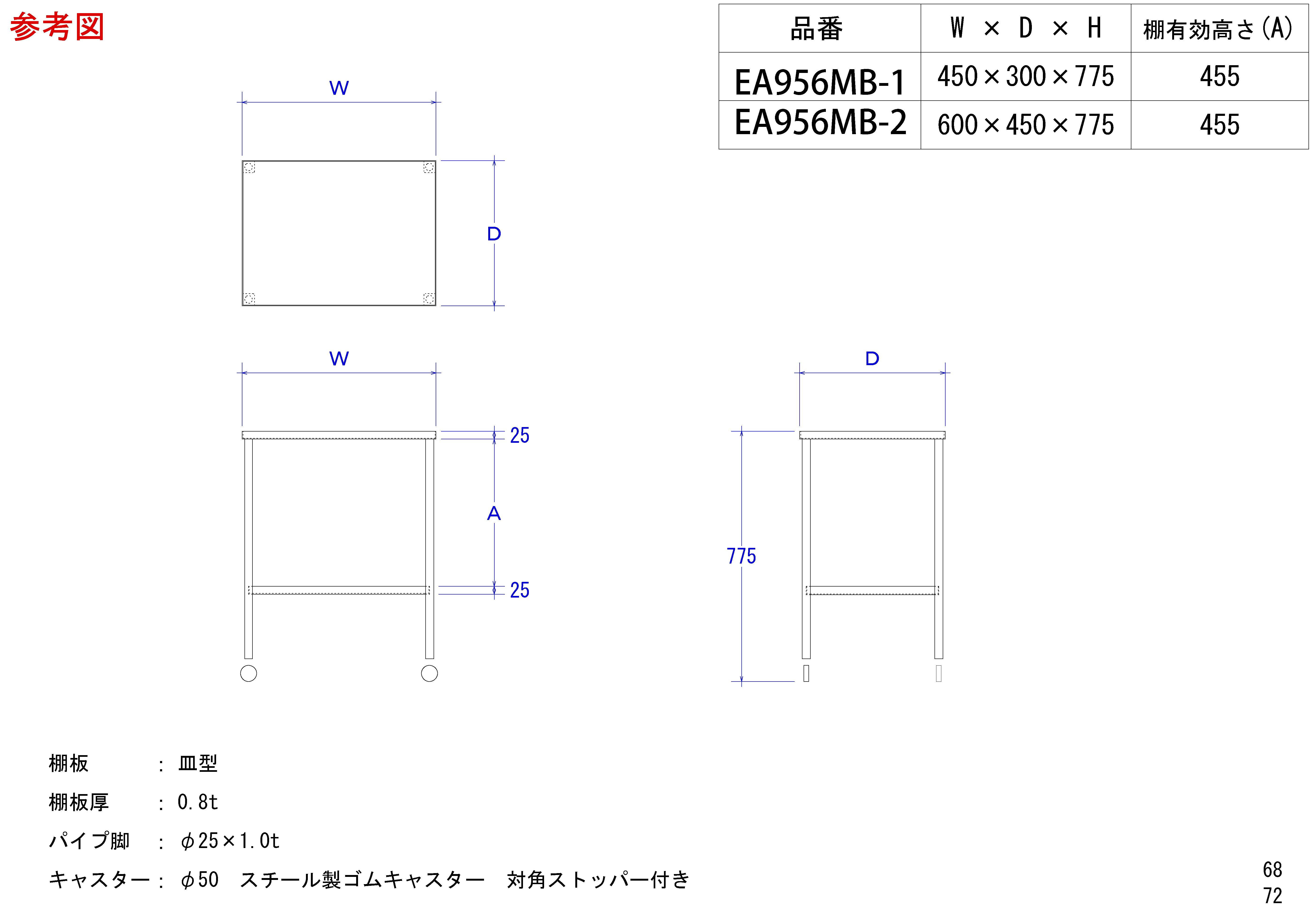 ワゴン(ステンレス製) 450x300x775mm/8kg EA956MB-1 4548745438512【別送品】