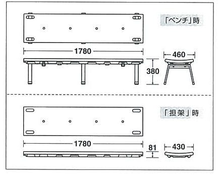 テラモト ベンチ(担架兼用/オレンジ) 1780x460x380mm EA956XE-60 4548745586015【別送品】