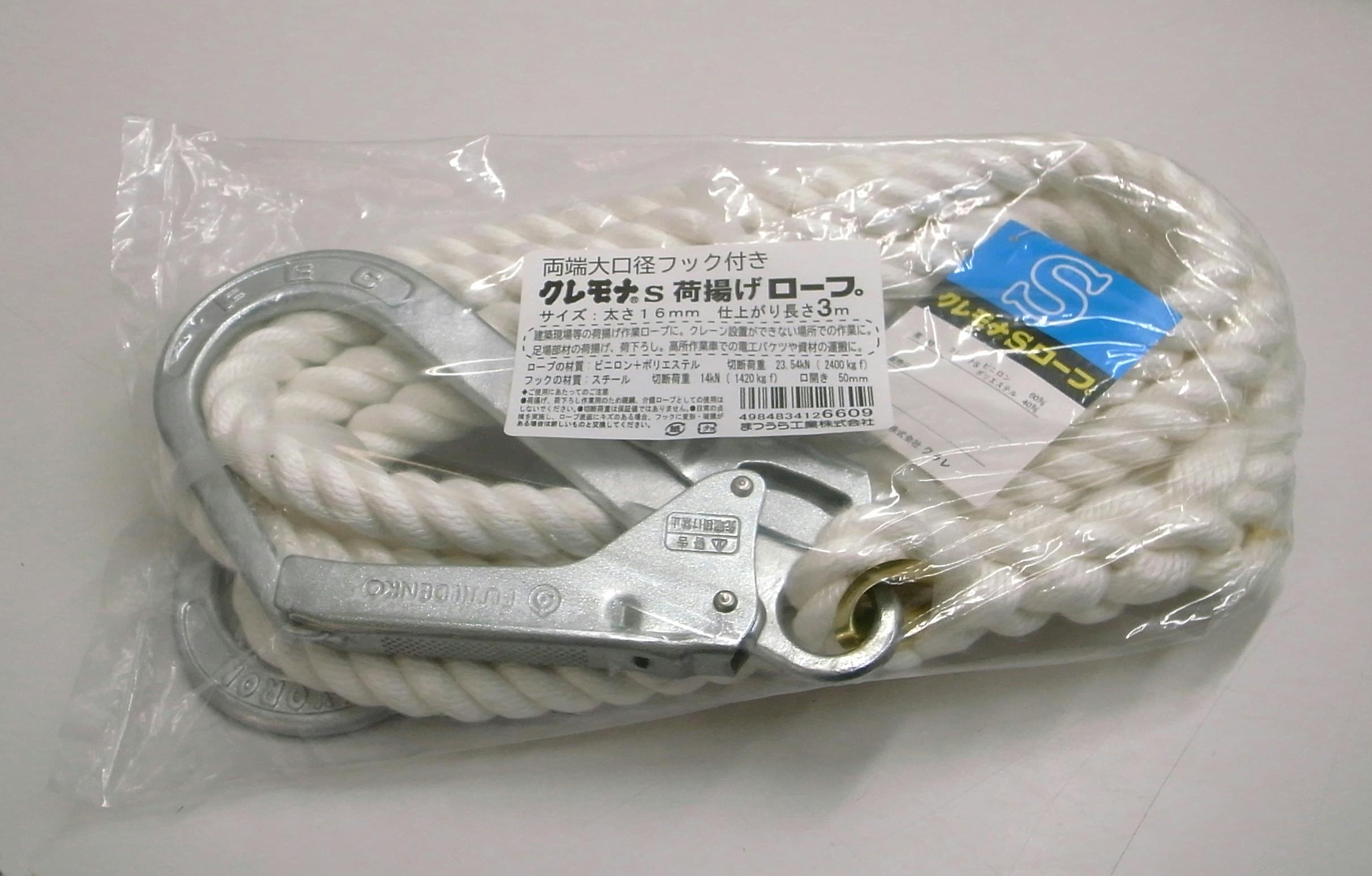 荷揚げ用ロープ(クレモナ・フック付) 16mmx3m EA981MA-3 4550061730355【別送品】