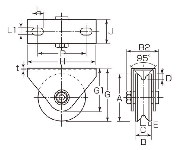 戸車(V型・重量用) 75mm/600kg EA986VA-75 4548745553086【別送品】