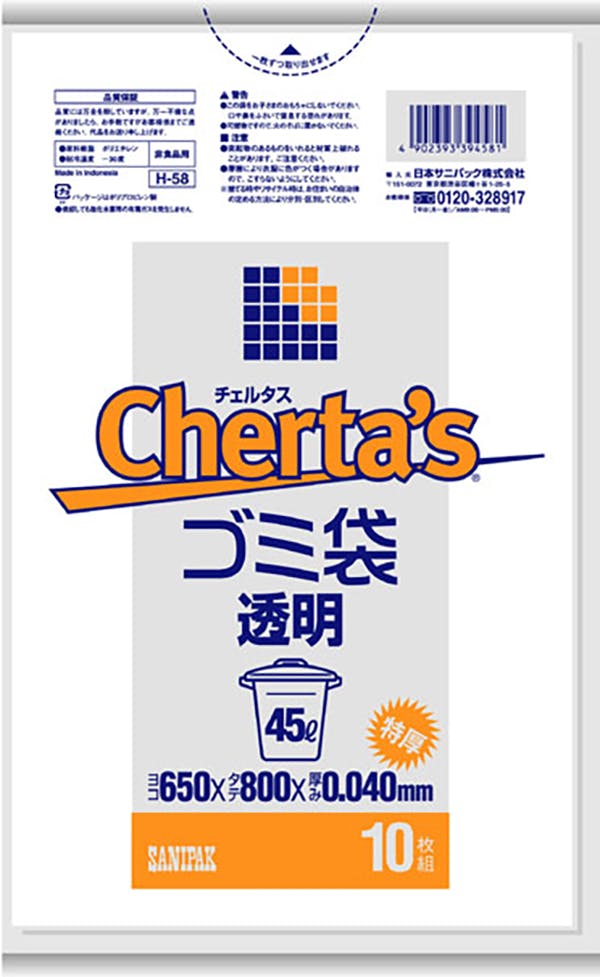 日本サニパック ポリ袋(透明/厚口/10枚) 650x800mm/45L EA995AD-331 4550061204016【別送品】