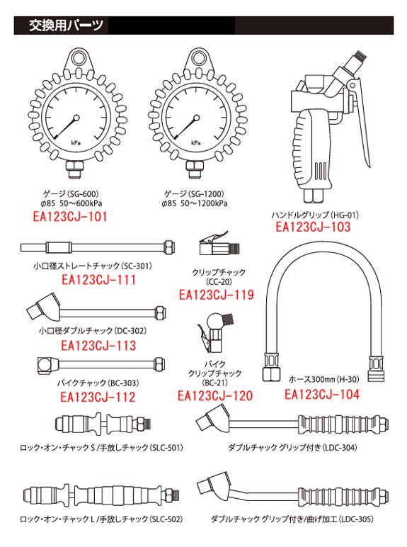 タイヤチャック&ゲージ(ストレートチャック) 50-600kpa EA123CJ-1A 4548745251456【別送品】