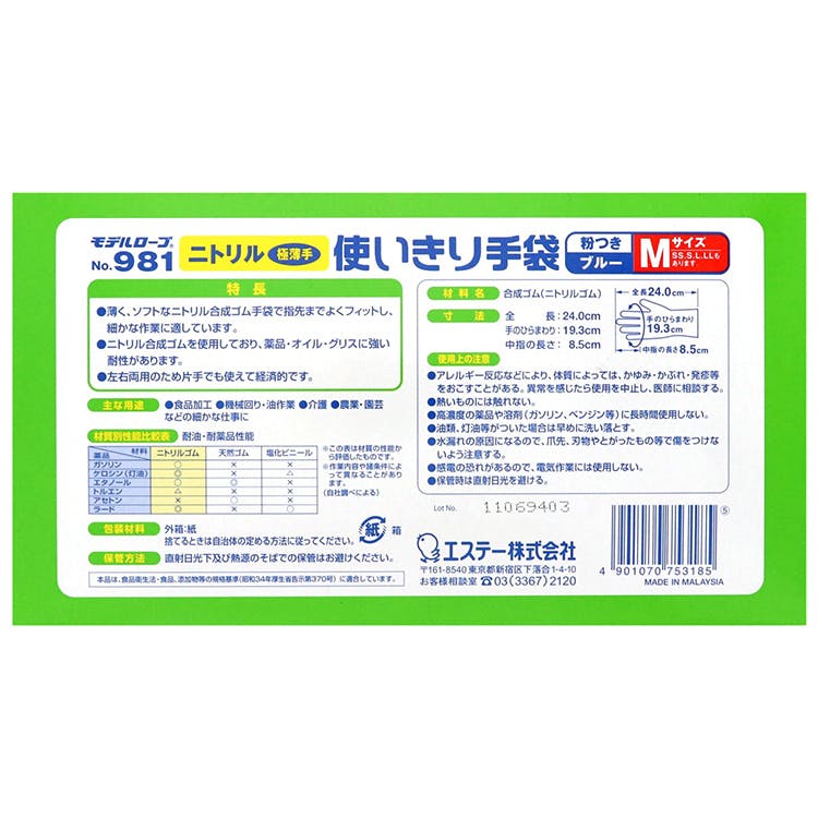 手袋(ニトリルゴム・パウダー付/100枚) [M/240mm] EA354DS-42 4550061892848【別送品】