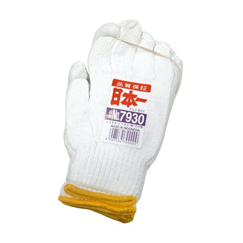 ●ゲージ…7●全長…230mm●材質…綿、レーヨン、ポリエステル、その他●カラー…白(手首のみ黄色)●掌周り…200mm●中指長さ…80mm●総重量…600g(12双)●特紡●2本編●フリーサイズ●あらゆる作業に気軽に使えるホピュラーな手袋。●2本編みで、手になじんで使いやすい。●インドネシア製で高品質です。