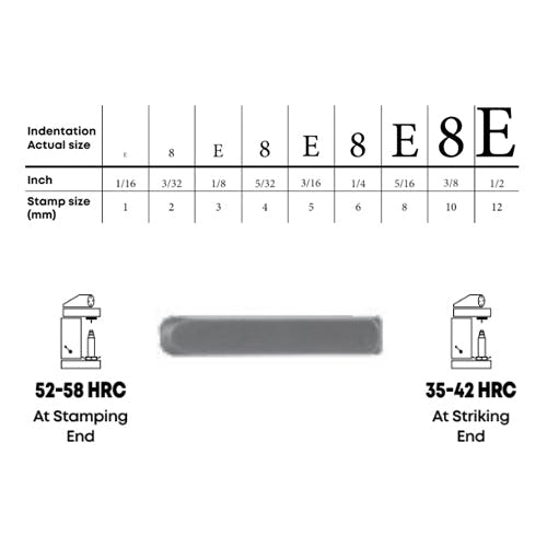 ●仕様…数字(0~9):9本組※6と9は共用です●文字サイズ…6mm●全長…68mm●シャンクサイズ…10.9mm●材質…本体:高炭素鋼ケース:プラスチック●硬度…スタンプ側:HRC52~58打撃側:HRC35~42●※数字の6と9は共用です。●スタンプ側と打撃側の硬度が違うため、使用中にパンチが飛び散るのを防ぎます。●打撃端は面取りされており、破片飛散による破損や事故を防止します。●高周波焼き入れにより、繰り返し使用できる耐久性があり、長寿命です。