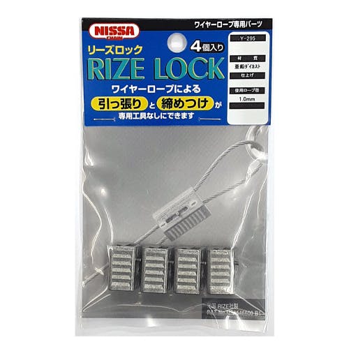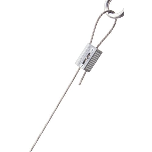 ●適合ワイヤー径(mm)…0.8~1.0●高さ(mm)…11.0●全長(mm)…19.0●材質…本体:亜鉛ダイカストピン、スプリング:ステンレス●重量(g)…9.5●破断荷重…35.9kg/0.8mm54.1kg/1.0mm●参考使用荷重…6.0kg/0.8mm8.0kg/1.0mm●入数…4個●バネでワイヤーを固定します。●工具なしでワイヤーロープの引張り、締め付けができます。