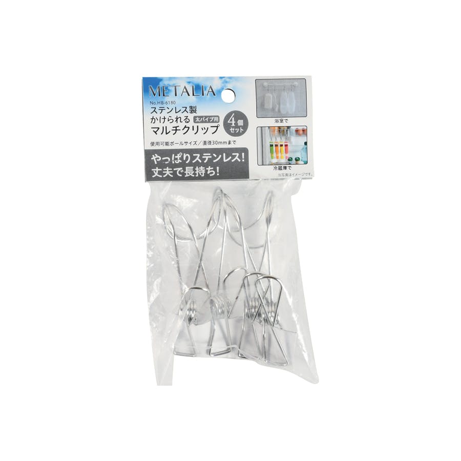 ●サイズ(W×D×H)mm…約30×60×100●材質…ステンレス鋼●入数…4個●重量(g)…約16●使用ポールサイズ/直径30mm以下●ちょっとした小物干しに。●掛けて使用できるので様々なシーンで使用できます。