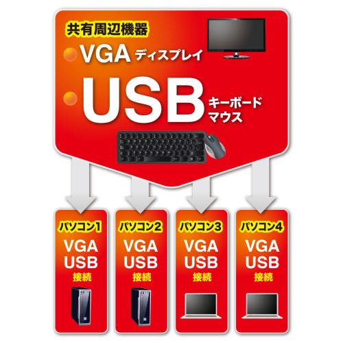 サンワサプライ パソコン自動切替器(アナログ・USB対応/4:1) EA764AE-75 4518340123663【別送品】