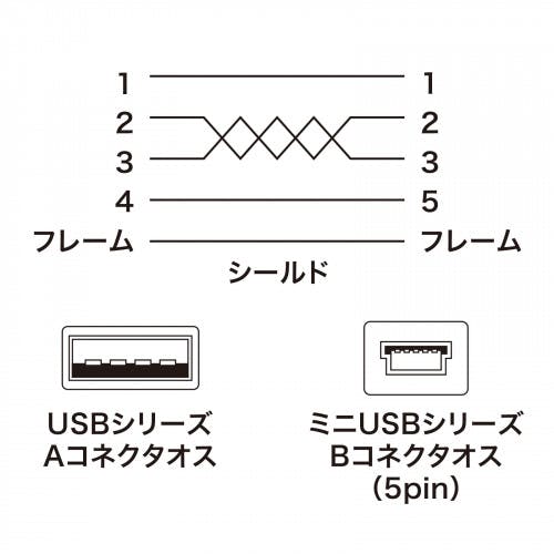 サンワサプライ ミニUSBケーブル(A-ミニB5pin/2.0対応) 1.0m EA764AJ-173A 4550061124956【別送品】