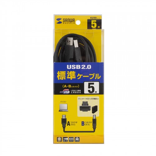 サンワサプライ USBケーブル(A-B/2.0対応/黒) 5.0m EA764AJ-94A 4550061124840【別送品】