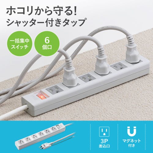 サンワサプライ タップ(6口/3P/3Pプラグ) AC125V/15Ax2.5m EA815GM-263 4518340128095【別送品】