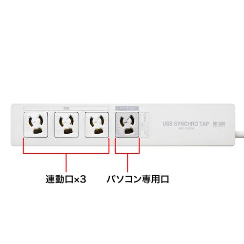 サンワサプライ パソコン連動タップ(4口/IC記憶式) 125V/15Ax5m EA815GM-382 4518340109148【別送品】