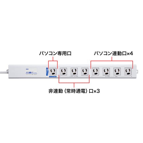 サンワサプライ パソコン連動タップ(8口/ライン型) 125V/15Ax2m EA815GM-384 4518340109223【別送品】