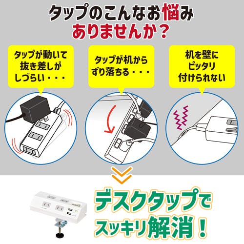 朝日電器(ELPA) タップ(4口/USBポート付/クランプ式) AC100V/14A EA815GN-91 4550061408377【別送品】