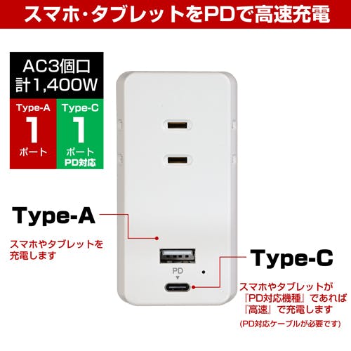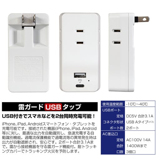 朝日電器(ELPA) タップ(USBポート2個・コンセント3個) AC100V-14A EA940CD-283 4550061408582【別送品】