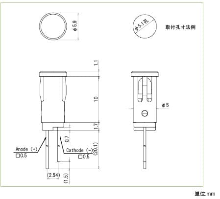 ●メーカー…サトーパーツ●型番…DB-15-F-R●絶縁抵抗…DC500V、100MΩ以上●耐電圧…AC500V (1分間)●本体材質…ポリカーボネート●端子金具…LEDリード線 (□0.5)●パネル取付方式…ワンタッチ装着●パネルカット…φ5.1mm●取付板厚…1.6mmまで●レンズ径…φ5.9mm●色…赤