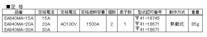 安全ブレーカー AC100V/15A EA940MA-15A 4518340272354【別送品】
