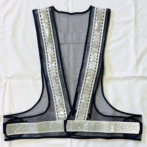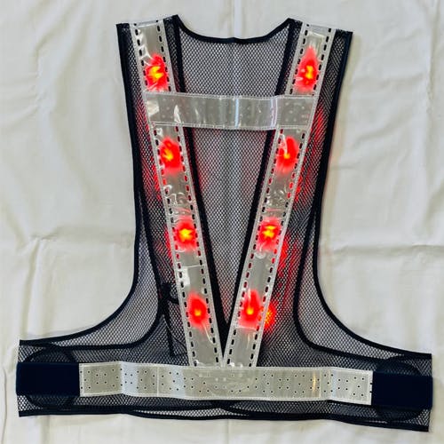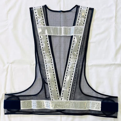 ●メッシュ色…紺●反射テープ色…白●着丈…60cm●ウエスト…フリー(130cmまで)●反射テープ幅…50mm●材質…反射テープ:塩化ビニールメッシュ:ナイロン●電源…単3電池×2本(付属)●光源…高輝度赤色LED球×16個●電池寿命…マンガン電池:約80時間アルカリ電池:約200時間●重量…240g(電池含む)●穴あき反射テープ、網目の大きいメッシュにより通気性がよく且つ軽量。●10着以上のご注文でネーム入れができます。版代・印刷代は別途見積もり申し上げます。