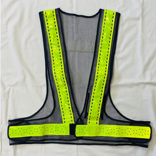●メッシュ色…紺●反射テープ色…黄●着丈…60cm●ウエスト…フリー(130cmまで)●反射テープ幅…50mm●材質…反射テープ:塩化ビニールメッシュ:ナイロン●電源…単3電池×2本(付属)●光源…高輝度赤色LED球×16個●電池寿命…マンガン電池:約80時間アルカリ電池:約200時間●重量…240g(電池含む)●穴あき反射テープ、網目の大きいメッシュにより通気性がよく且つ軽量。●10着以上のご注文でネーム入れができます。版代・印刷代は別途見積もり申し上げます。