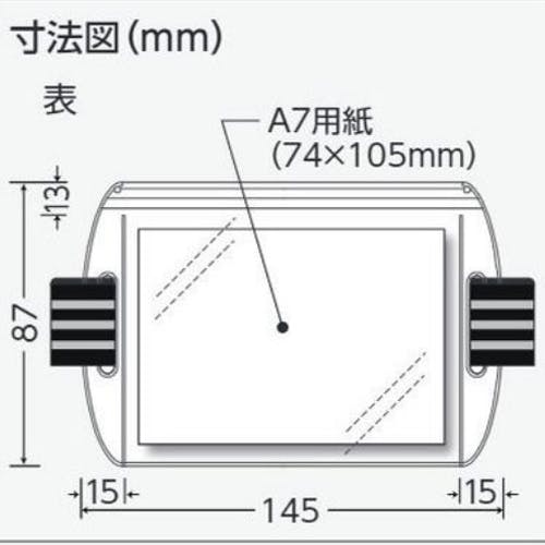 ●メーカー…ユニット(UNIT)●型番…848-73●サイズ…145×87mm●カラー…グリーン●材質…表示部:PVCゴムひも部:ポリエステル●ベルトサイズ…25×320mm●重量…22g●付属品…記入用紙1枚(74×105mm)●名刺や自作表示が差込めます。●ゴムベルト式