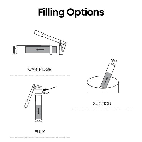 ●容量(ml)…500●ノズル長(mm)…300●吐出量(g/ストローク)…1.0●ノズルねじサイズ…M10×1●筒長…273mm●適用グリース…カートリッジグリース(400ml)手詰めグリース●日常的なメンテナンスに最適です。●頭部を半回転させることで空気を抜くことができます。