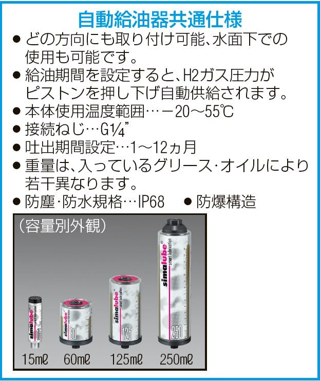 • シマテック(simatec) グリース自動給油器(高温用) 125ml EA991CT-3AB 4518340281509【別送品】