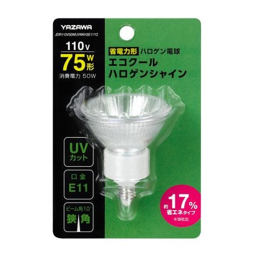 ●メーカー…ヤザワコーポレーション●型番…JDR110V50WUVNKH3E11YZ●種別…75W形狭角●電圧…110V●口金…E11●消費電力…50W●全光束…730lm●定格寿命…3,000時間●ビーム角…10°●中心光度…5.900cd●サイズ…φ50.5×62mm●重量…約50g●材質…ガラス、セラミック●省電力設計●UVカットカバーガラスにより紫外線を低減します。