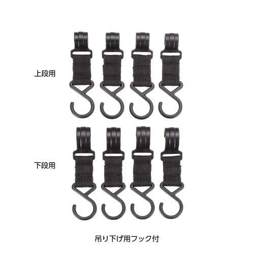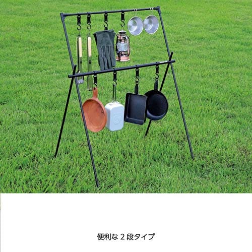 ●メーカー…キャプテンスタッグ●型番…UC-1853●使用時サイズ(収納時サイズ)W×D×H(mm)…770×550×990(90×90×440)●重量…700g●耐荷重(kg)…下段:6kg、上段:2kg、フック:1.5kg●材質…フレーム:アルミニウム合金、樹脂部:ナイロン●軽量・コンパクトな2段タイプ。●テント内の収まりもGOOD。●収納袋付き。●吊り下げ用フック付き。