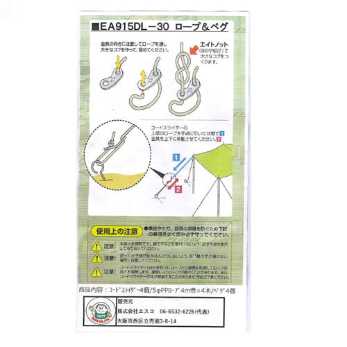 テント用ペグセット(4本/4mロープ付) 250mm EA915DL-30A 4550061404225【別送品】