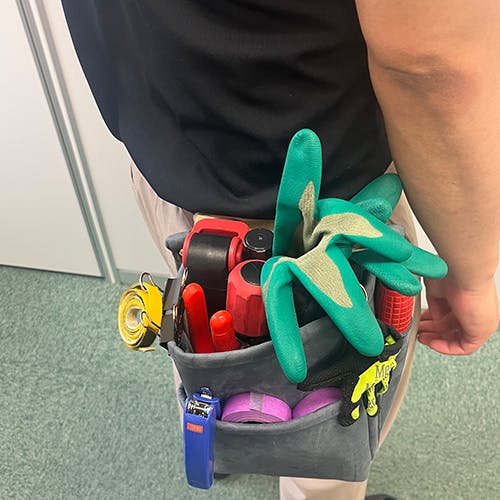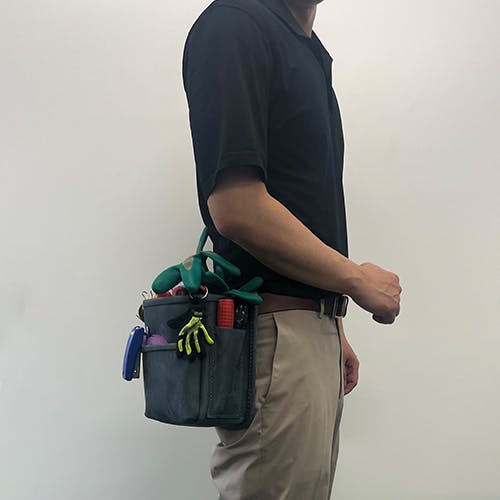 ●サイズ(mm)…185×130×220(H)●ベルト通し幅…50mm●材質…高級牛革(黒染)●ポケット数…4●2段タイプで大容量メインポケットには必要なものをまとめて収納できます。●両サイドにドライバー・プライヤーなど収納できるポケット付き。●ヌバック革(牛革):最終仕上として表面をペーパー掛けした高級革です。●※革製品のためサイズには個体差がありますのでご了承ください。