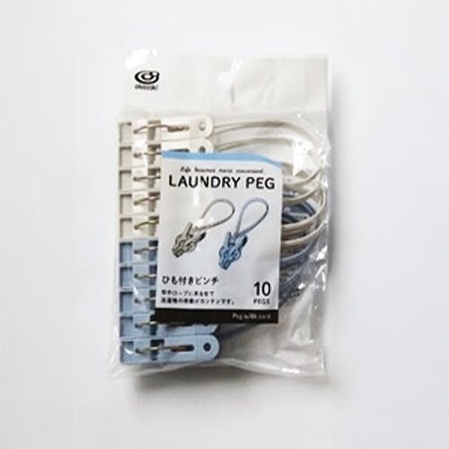 ●サイズ…12×56×32(H)mm●入数…10個●内容…グレー:5個ブルー:5個●材質…本体:ポリプロピレンバネ:鋼線ヒモ:ポリエチレン●耐熱温度…110℃●耐冷温度…-10℃●紐付きの洗濯バサミです。●丈夫なバネで洗濯物をしっかりはさめます。●竿やロープに吊るせて使用でき、洗濯物の移動が簡単です。