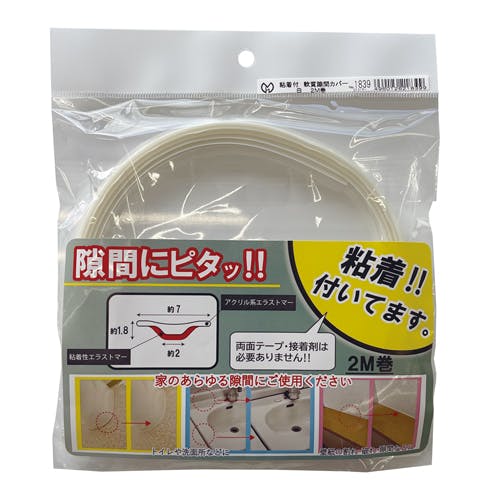 ●幅(mm)…7●長さ(m)…2●厚さ(mm)…1.8●材質…本体:アクリル系エラストマー粘着部:粘着性エラストマー●色…白●両面テープ・接着剤不要。●粘着付きなので貼りやすくはがれにくい。●トイレや洗面台などの隙間に、壁紙の割れ、破れ、隙間に。