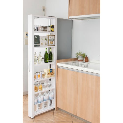 ●メーカー…田窪工業所●型番…NWH-150●※注意※…【お客様組立品】●サイズ(W×D×H)mm…156×577×1654棚板7枚(天板含む)●重量(kg)…7.59●総耐荷重…50kg(棚板1枚あたり8kgまで)●材質…スチール(マットホワイト塗装)●キャスター…固定×4●6段●ガードバー、キャスター付き●転倒防止用チェーン、パーツ付属●高い収納力と丈夫な構造で「すき間」を無駄なく活用!
