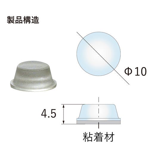 ●メーカー…エクシール●型番…SC01-27004●サイズ(mm)…径:φ10厚み:4.5●形状…台型●入数…64個●材質…ポリウレタン●カラー…無色透明●硬度…アスカーC67●文具や雑貨の仮固定、テーブルのキズ防止などに。●可塑剤は含まれていません。●紫外線による黄変が起こりません。●高い弾性と衝撃吸収性をもつウレタンクッション高い耐久性と振動防止力があり、戸当たりの緩衝やガラス、アクリルなどのすべり止めに最適です。