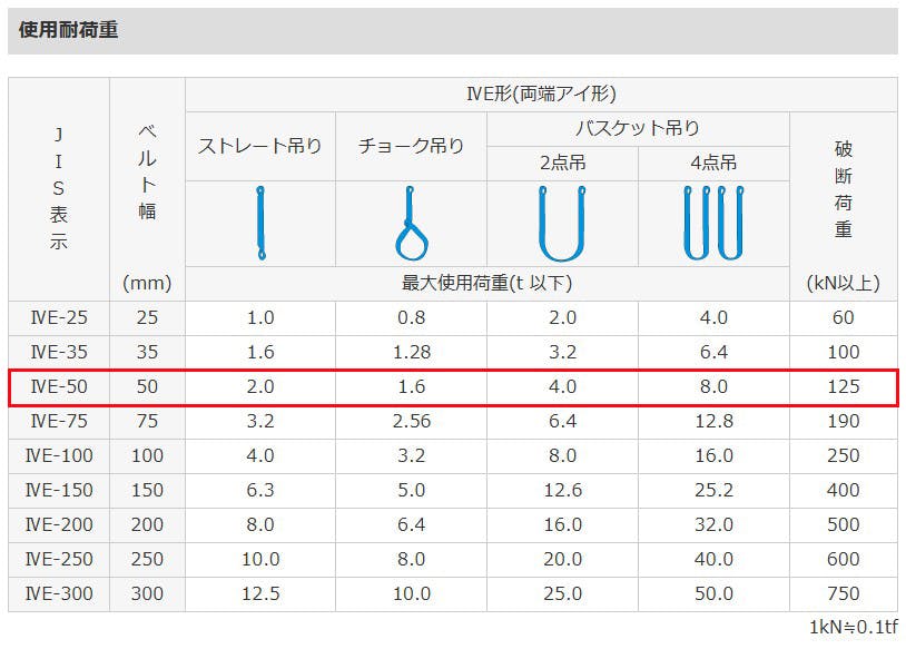 ●メーカー…東レインターナショナル(TORAY)●型番…SGE4E 50×3●シリーズ…シライスリング●商品名…シグナルスリング HG●幅…50mm●全長…3.0m●揚量…2.0t●材質…ポリエステル(再生糸)●破断荷重…125kN●アイの長さ…300mm●縫製部の長さ…200mm●本体の厚さ…8~9mm●表面は青色ですが、芯材は白色です。芯材の白色が見えたら寿命ですので品質管理に有効です。●JIS 4等級