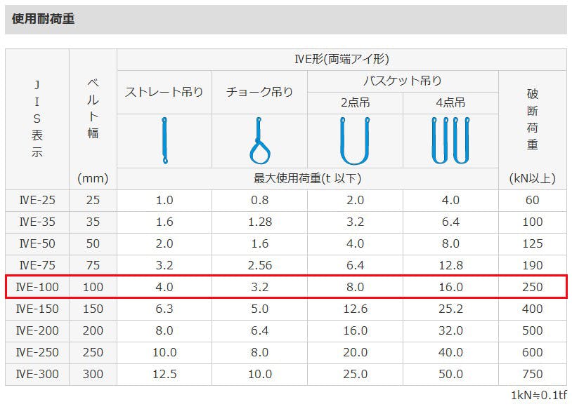 ●メーカー…東レインターナショナル(TORAY)●型番…SGE4E 100×8●シリーズ…シライスリング●商品名…シグナルスリング HG●幅…100mm●全長…8.0m●揚量…4.0t●材質…ポリエステル(再生糸)●破断荷重…250kN●アイの長さ…400mm●縫製部の長さ…300mm●本体の厚さ…8~9mm●表面は青色ですが、芯材は白色です。芯材の白色が見えたら寿命ですので品質管理に有効です。●JIS 4等級