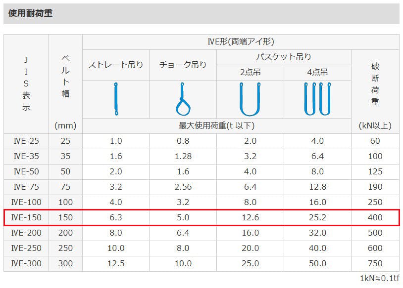 ●メーカー…東レインターナショナル(TORAY)●型番…SGE4E 150×2.5●シリーズ…シライスリング●商品名…シグナルスリング HG●幅…150mm●全長…2.5m●揚量…6.3t●材質…ポリエステル(再生糸)●破断荷重…400kN●アイの長さ…500mm●縫製部の長さ…400mm●本体の厚さ…10~11mm●表面は青色ですが、芯材は白色です。芯材の白色が見えたら寿命ですので品質管理に有効です。●JIS 4等級