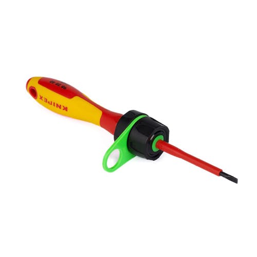 ●適合シャンク径…3.9~9mm●材質…ABS樹脂●最大負荷…0.5kg●重量…20g●サイズ…27(W)×50(D)×30(H)mm●セーフティーツールランヤード用のアダプターです。●ドライバー等に組み合わせて使うことができます。●ドライバーの軸部にリングを通し、ストッパーで固定します。●取付穴のないドライバーにランヤード通し穴を作ることができます。